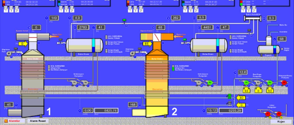 Kojenerasyon tesislerinde gaz türbininden/gaz motorundan atılan yüksek sıcaklıktaki gaz atık ısı kazanında buhar üreterek değerlendirilir ve toplam sistemin verimi yükseltilir. Atık ısı kazanları için dizayn ettiğimiz PLC ve SCADA tabanlı otomasyon  sistemi buhar üretim sisteminin tesisteki diğer birimlerden bağımsız olarak çalıştırılmasını sağlıyor. Buhar üretim sisteminin sürekli olarak istenen şartlarda çalışabilmesini garanti etmesiyle birlikte acil durum algoritmaları sayesinde, acil durumlarda sistemi emniyetli bir şekilde durduruyor. Proses verileri SCADA ile izleniyor ve sistemin sürekli personel bulundurulmadan çalışmasına imkan sağlıyor.